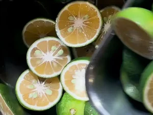 大分県産のカボスを、一つずつスタッフが手絞りしたものでございます。